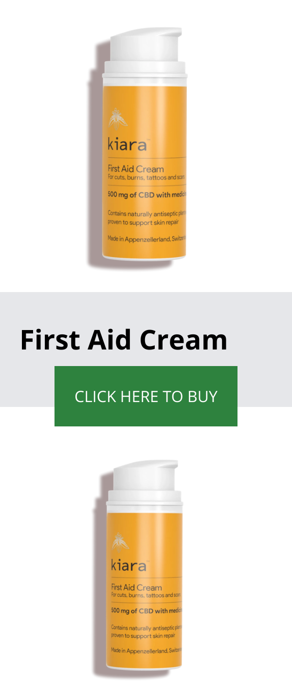Our First Aid Cream is a unique formulation of CBD extract and medicinal plants clinically proven to disinfect wounds, promote skin repair and minimize blemishes and scarring.
